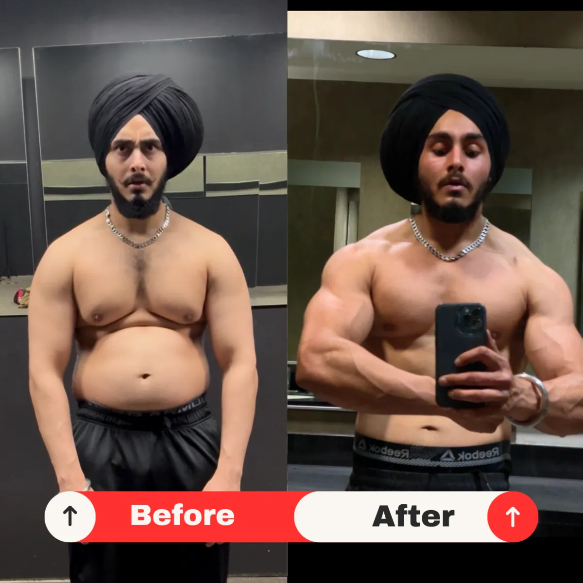 I’m Aroz Preet Singh, a young professional who struggled to gain weight and muscle because of constant travel and irregular meals. After joining this coaching program, I started building steady muscle mass and strength with a plan that fit my travel routine. I’ve gone from underweight and inconsistent to confident, disciplined, and visibly stronger.